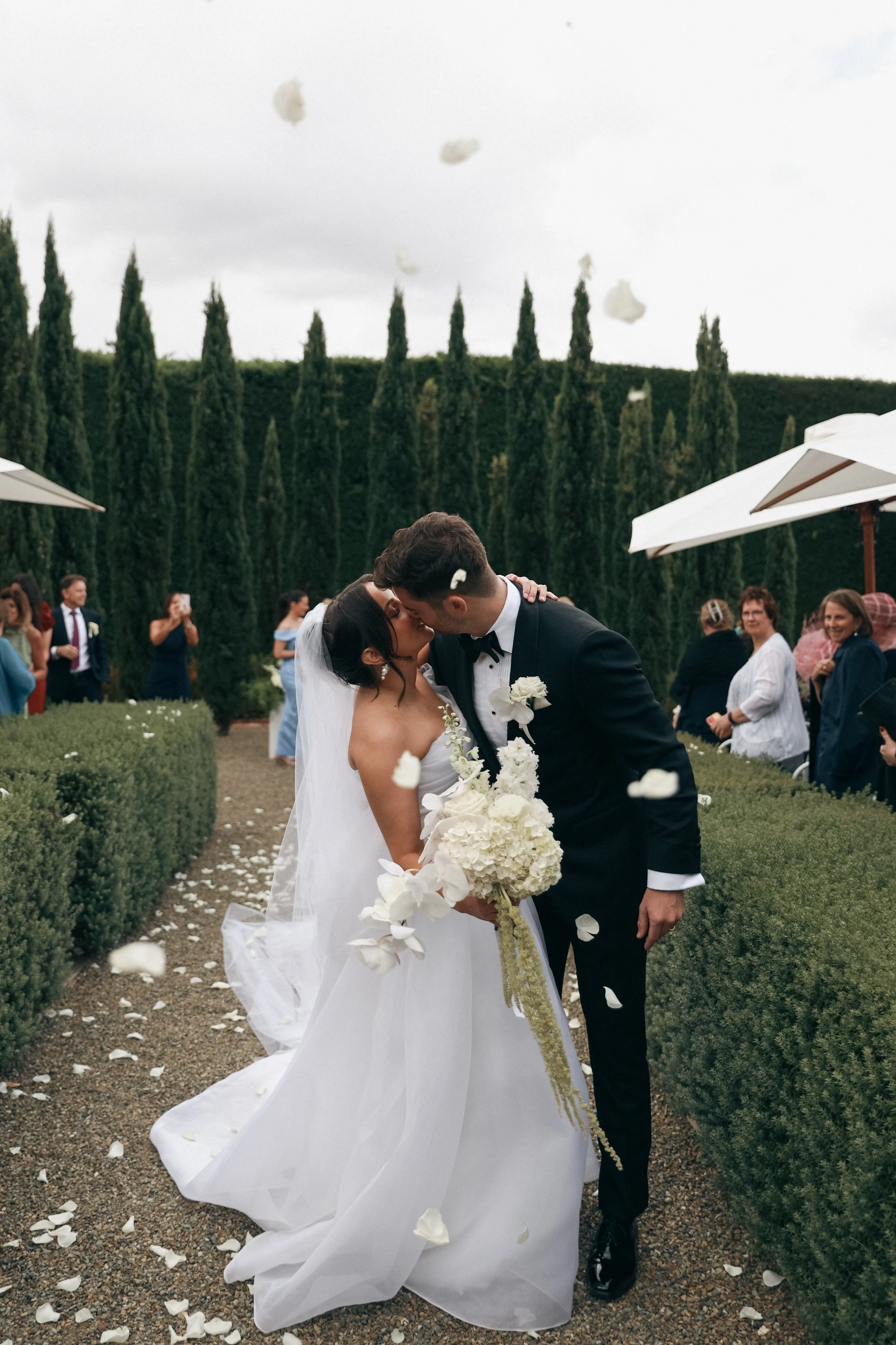 Grace and Matt’s wedding at Coombe Winery Estate was the epitome of elegance, sophistication, and timeless romance. Set against the stunning backdrop of lush vineyards and historic architecture, their day was nothing short of spectacular. Grace exuded classic beauty in a sleek, structured gown, while Matt looked effortlessly refined in a tailored black tuxedo. The couple exchanged vows in a sun-drenched garden, surrounded by an intimate gathering of loved ones, before celebrating with a candlelit reception filled with laughter, champagne toasts, and heartfelt moments. Every detail, from the floral arrangements to the golden hour portraits, reflected their love story—effortlessly chic and deeply sentimental. With an ambiance of understated luxury, their wedding was a perfect blend of modern glamour and timeless romance, making it an unforgettable celebration at one of Victoria’s most prestigious venues.